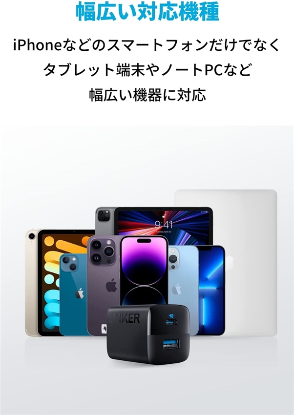 iPhoneなどのスマートフォンだけでなく、タブレット端末やMacBook Airなど、幅広い機器に対応しています。