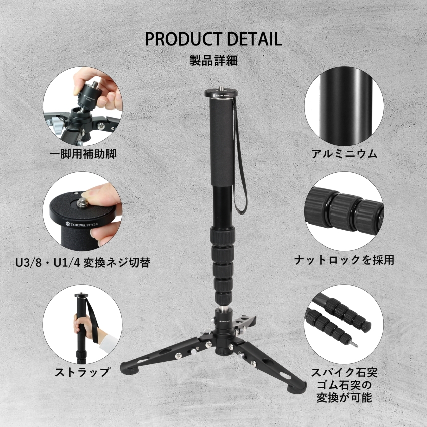 「MA326AJ+STA20J アルミ6段一脚マルチスタンドセット」は、安定感を保ちながら移動もスムーズで、旅先や野外での撮影におすすめです。