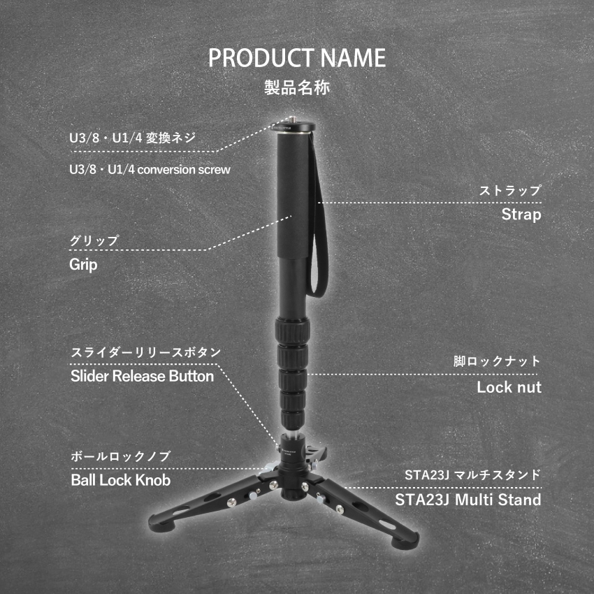※「STA20J」は、3/8インチネジに対応した一脚に取り付けが可能なマルチスタンドです。