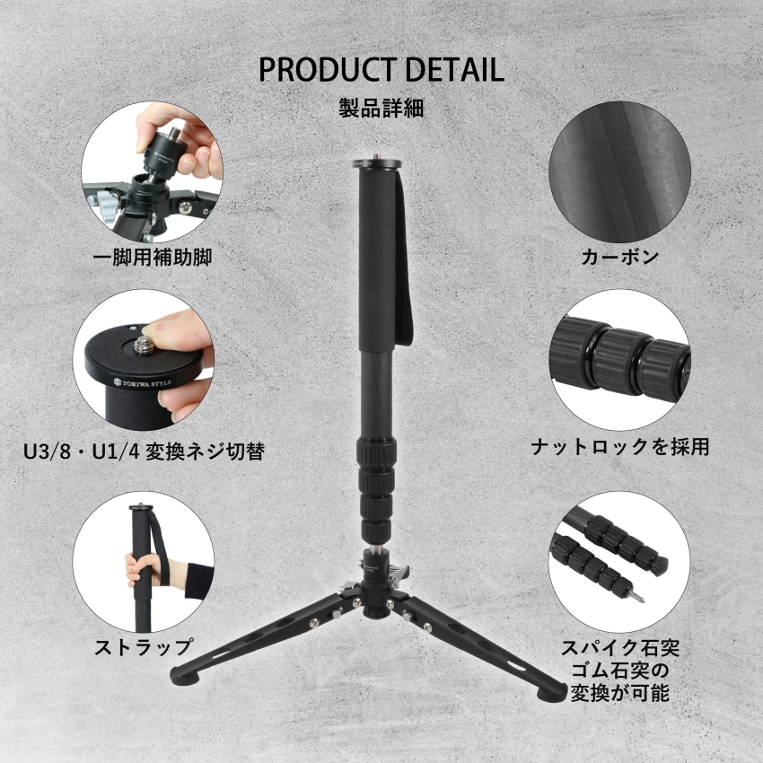 トキワスタイル カーボン5段一脚マルチスタンドセット MA365CJ+STA23J ■納期約2〜3週間
