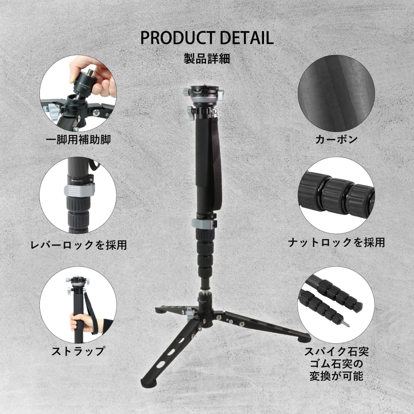 「MA366CLEJ+STA23J レベラーベース付カーボン6段一脚マルチスタンドセット」は、パイプ径約36mmの堅牢な作りと軽量なカーボン素材により、高い安定性を実現します。