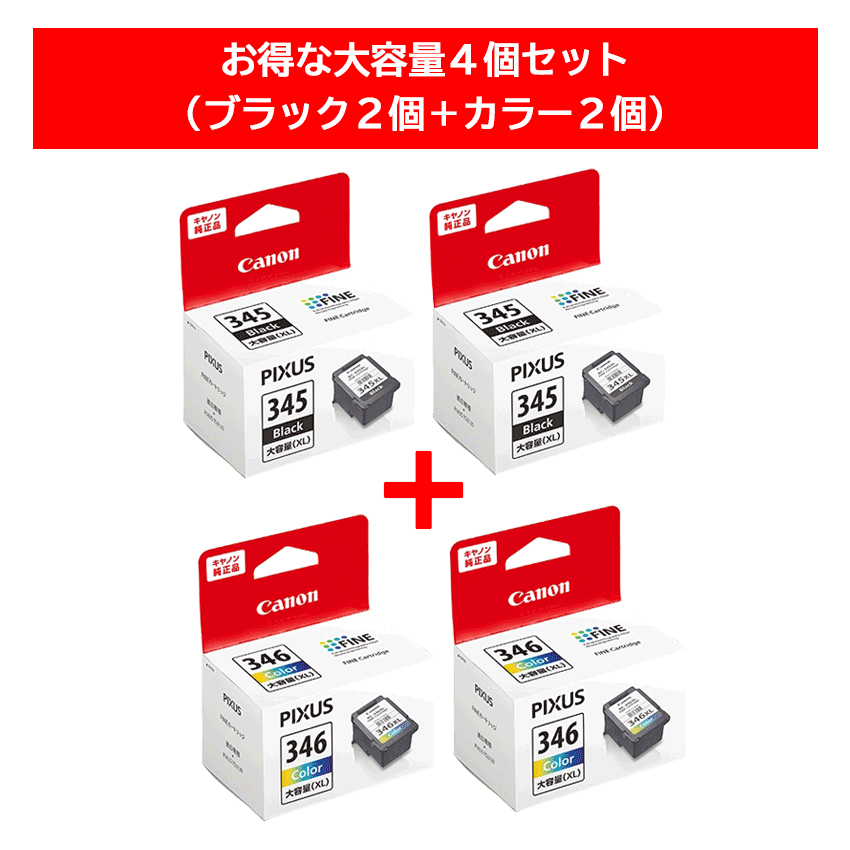 【期間限定】FINEカートリッジ BC-345XL + 346XL 大容量4個セット(ブラック2個+カラー2個)