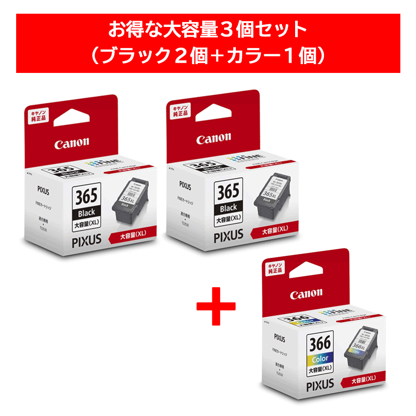 FINEカートリッジ BC-365XL + 366XL 大容量3個セット(ブラック2個+カラー1個)