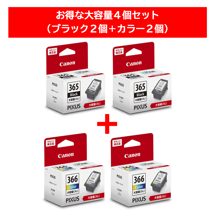 FINEカートリッジ BC-365XL + 366XL 大容量4個セット(ブラック2個+カラー2個)