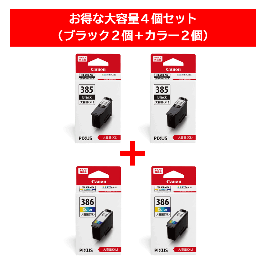 【期間限定】FINEカートリッジ BC-385XL + 386XL 大容量4個セット(ブラック2個+カラー2個)